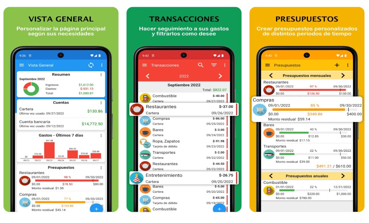 Esta app te permite entender de forma muy visual y práctica en qué te estás gastando los ingresos, organizar un objetivo de ahorro y limitar los gastos para poder cumplir este objetivo. La aplicación presenta los datos en forma de lista numérica con íconos para cada gasto y complementa con gráficos circulares para saber en qué categoría se está yendo la mayor parte de las ganancias.