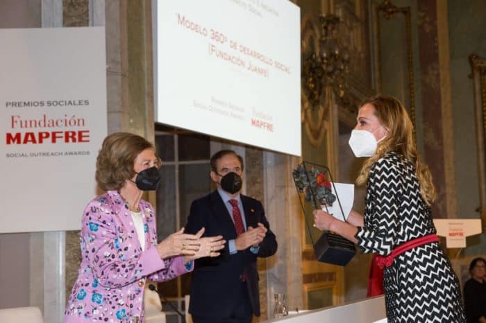 Me sorprendió gratamente esta fotografía que les comparto en la que Catalina Escobar, presidenta de la Fundación Juanfe, recibe de manos de la Reina Sofía, en España, el Premio de la Fundación MAPFRE como Mejor Proyecto o Iniciativa de Impacto Social por el Modelo 360...