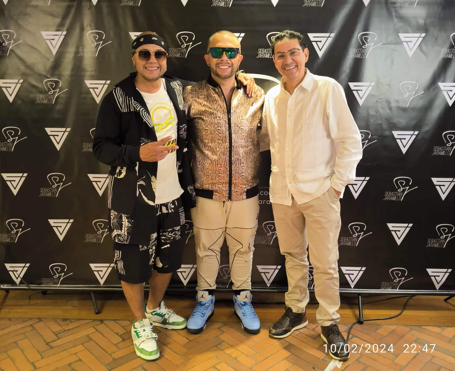 Con el productor Guerrero (a la izquierda) y el artista SJ en la noche de lanzamiento de Hace Calor en el Country Club de Ejecutivos