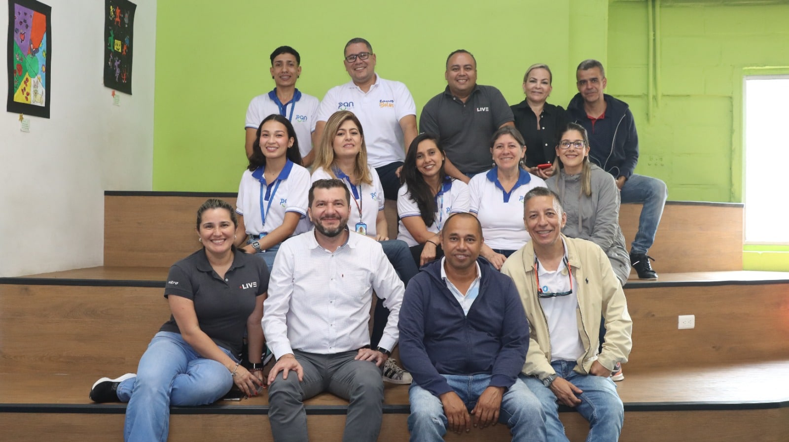 Diego Sánchez (abajo) con parte del equipo de PAN Corporación Social. Foto cortesía.